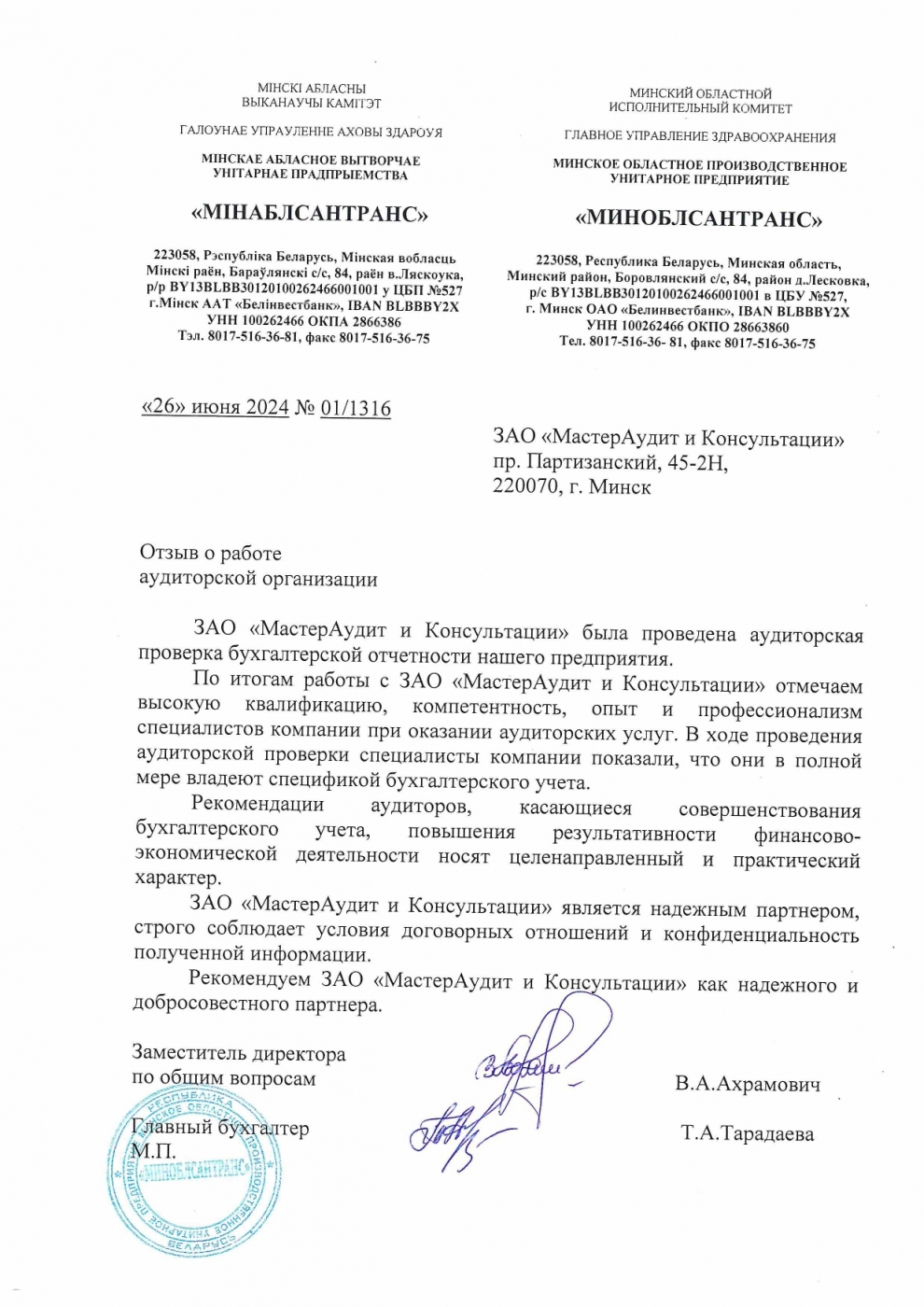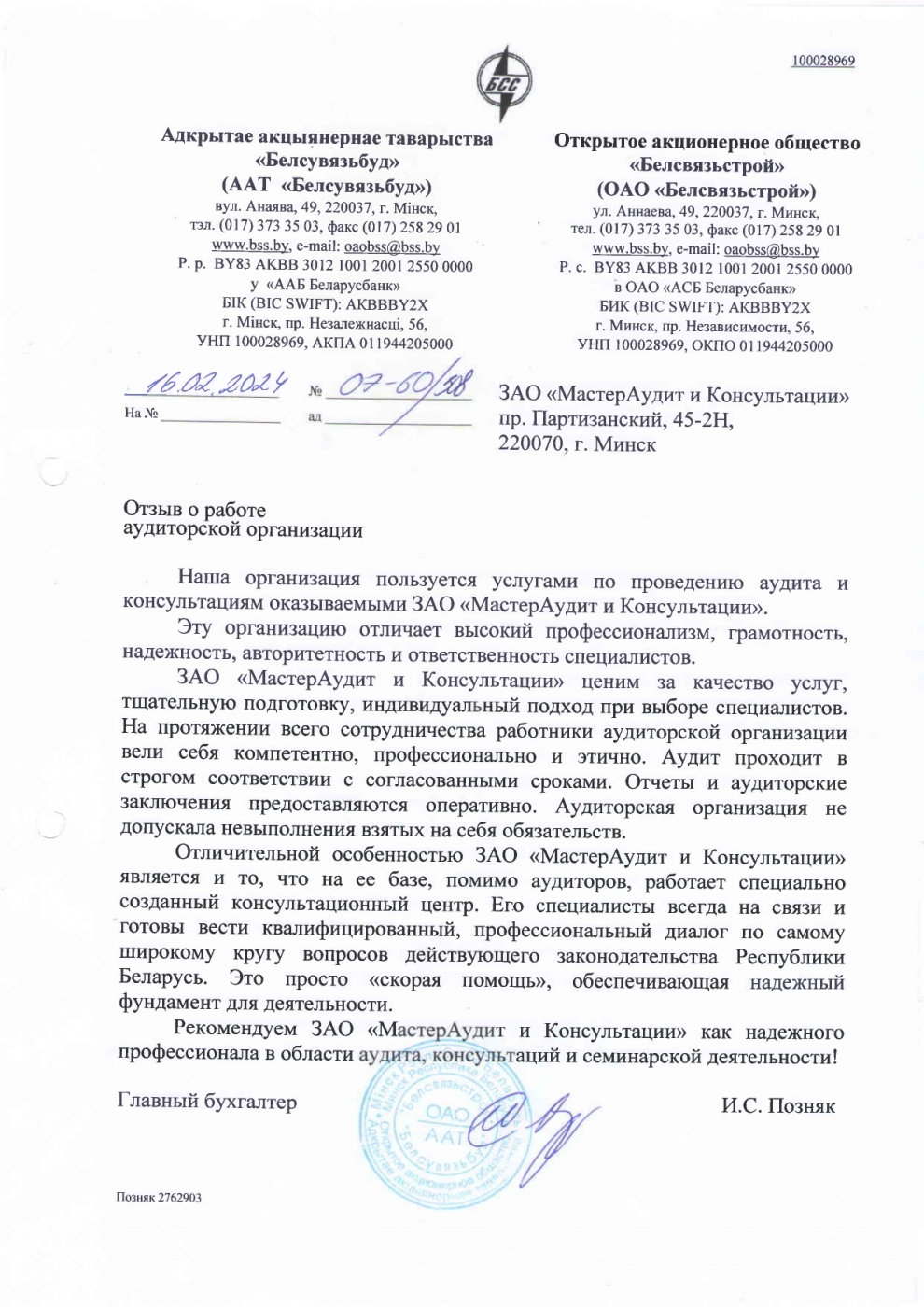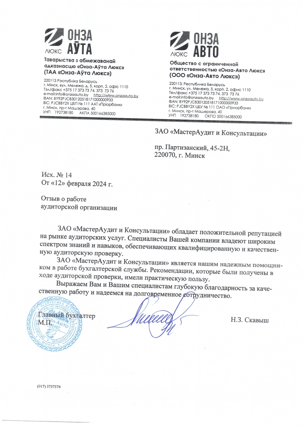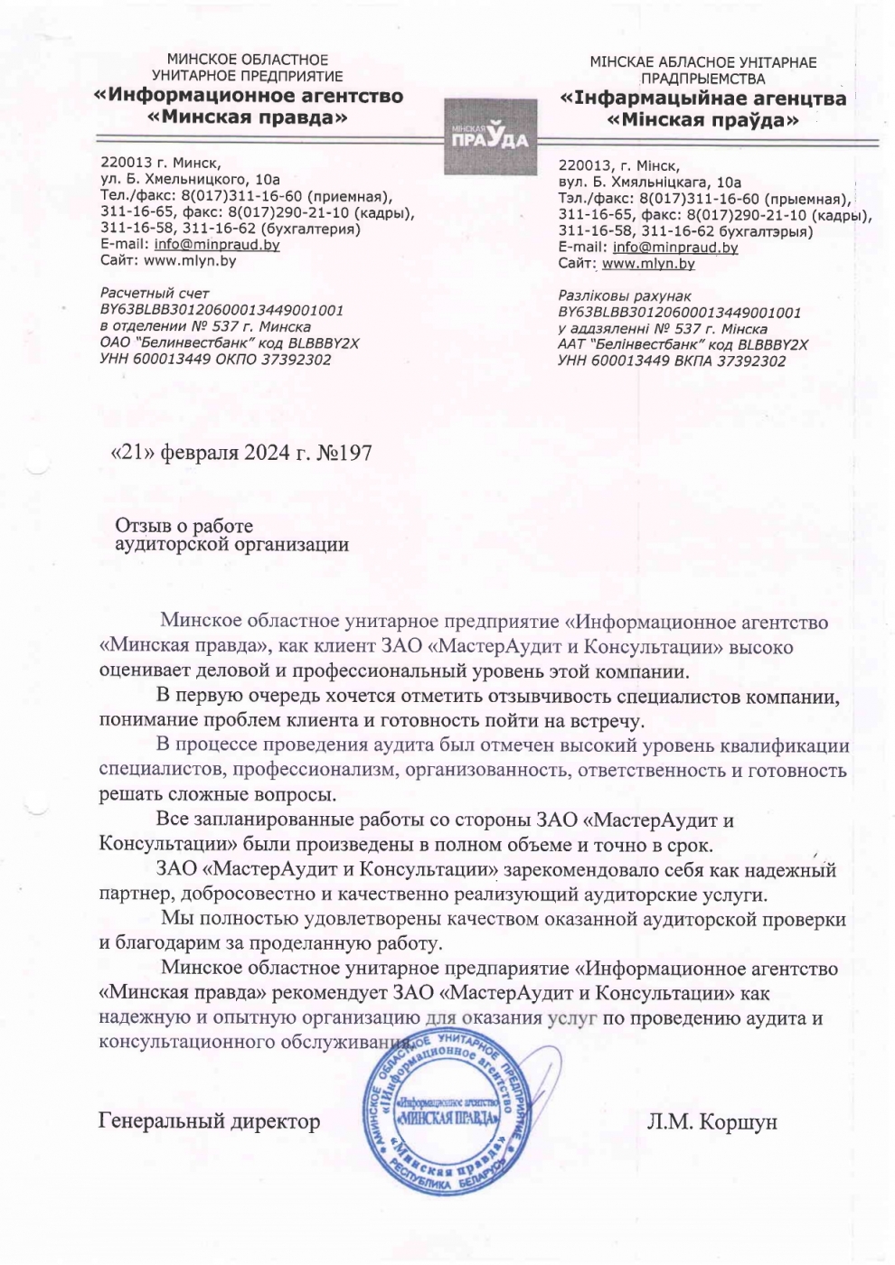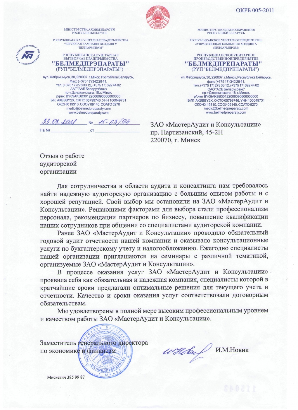 Длительность нашей работы на рынке аудиторских услуг, ежегодное присутствие в рейтинге ведущих аудиторских организаций Республики Беларусь, наличие постоянных клиентов свидетельствуют о нашей надежности, стабильности и высоком профессионализме.