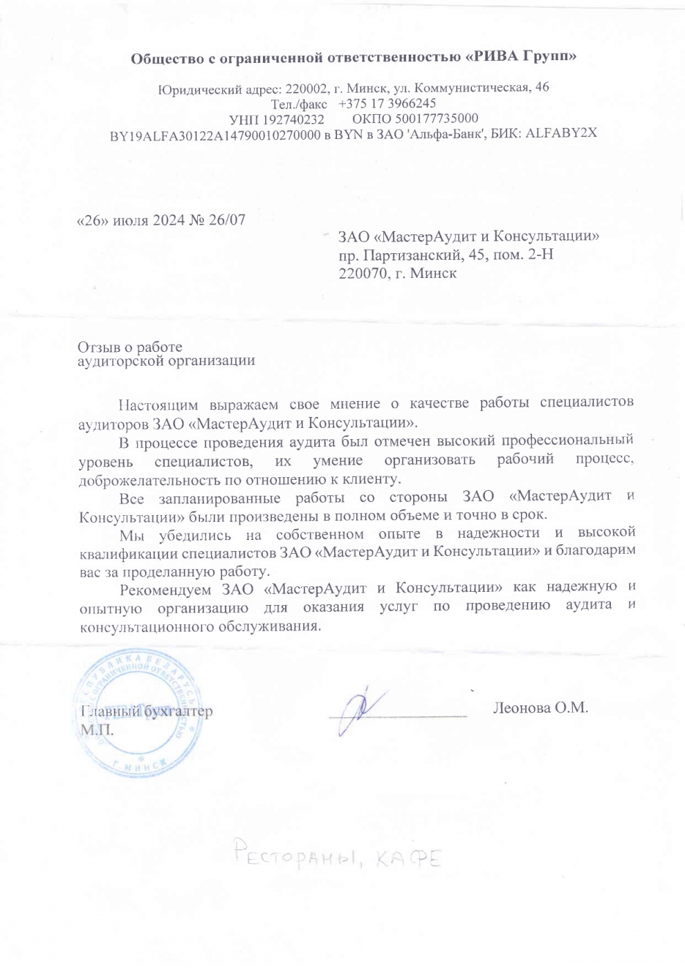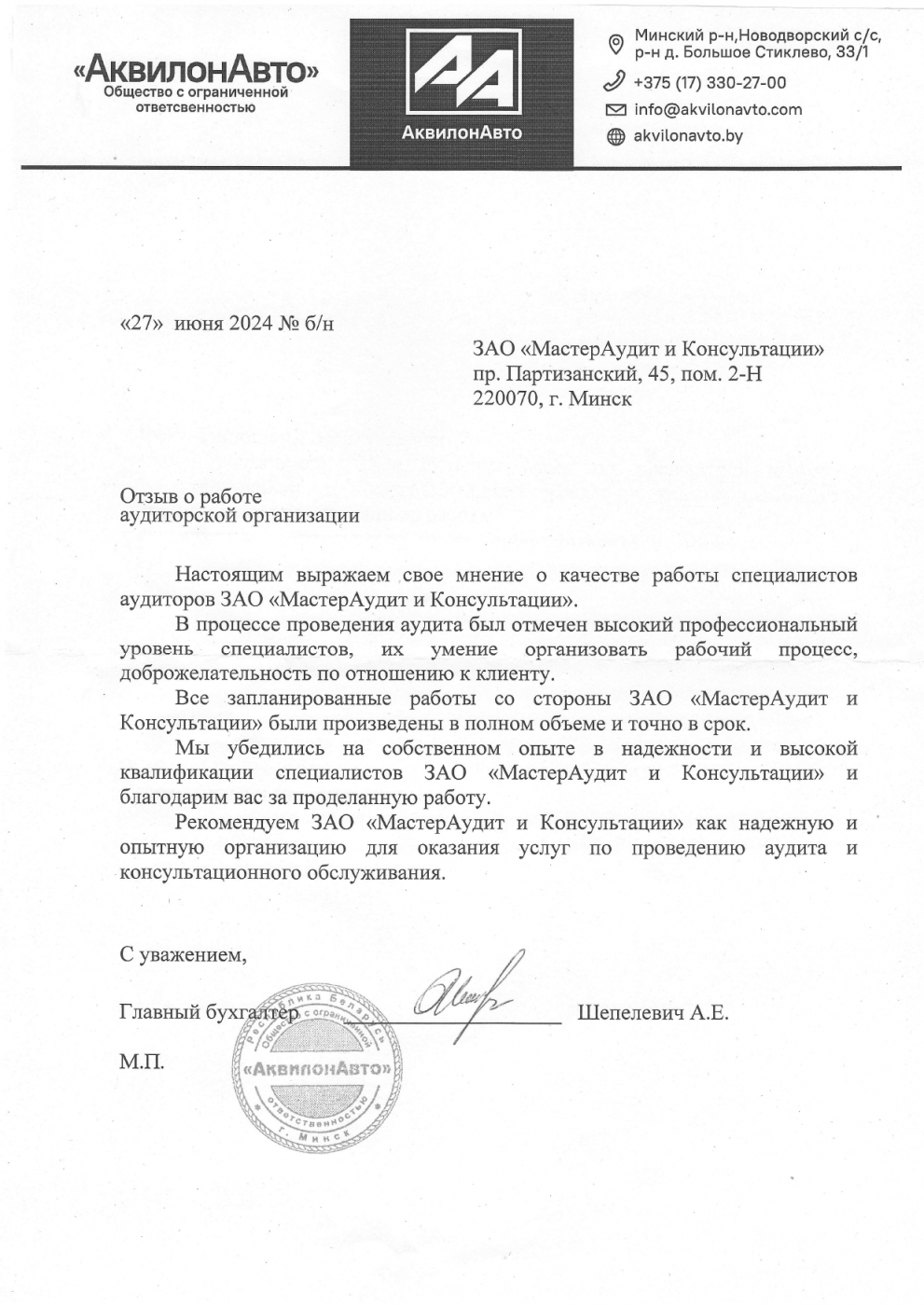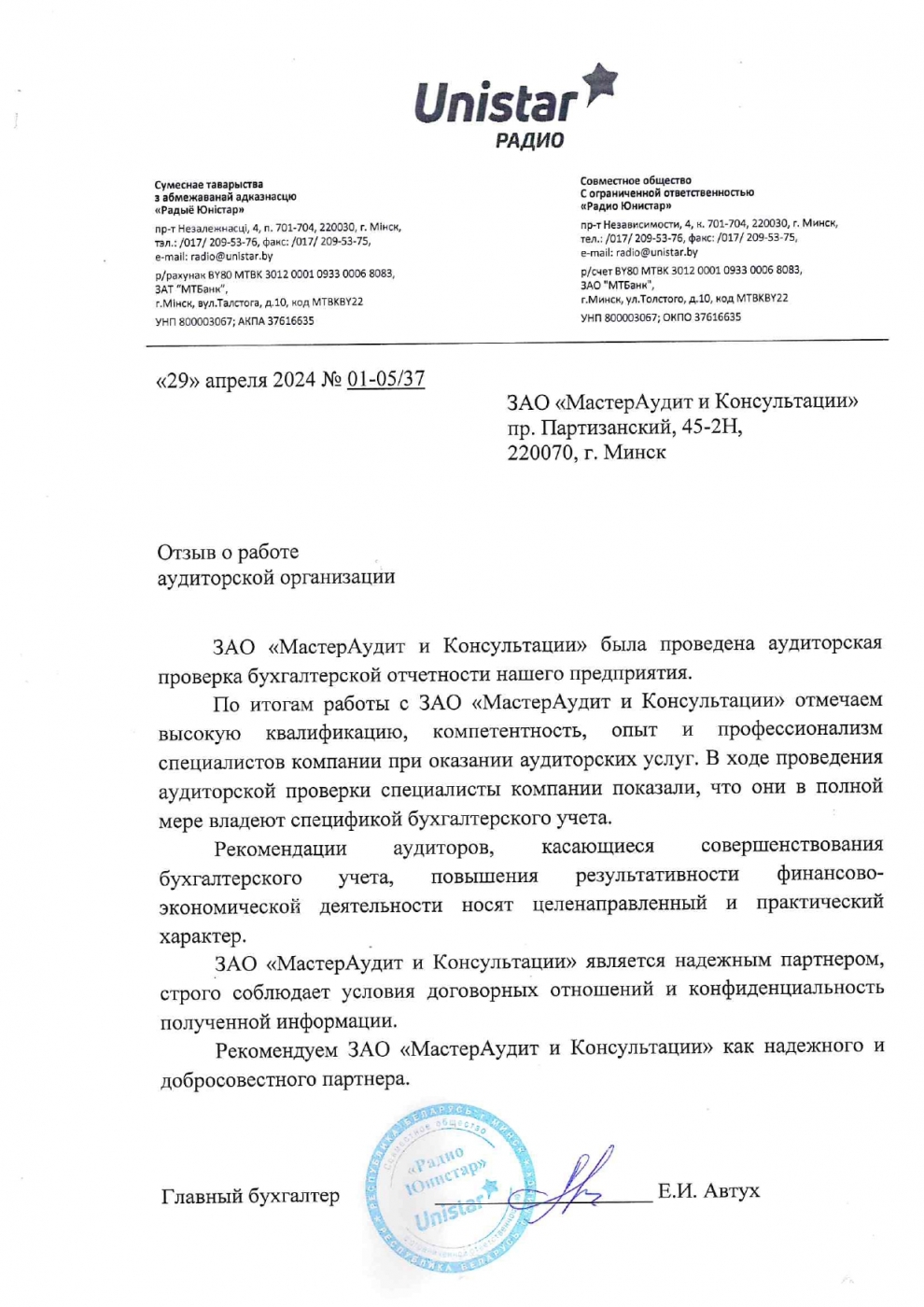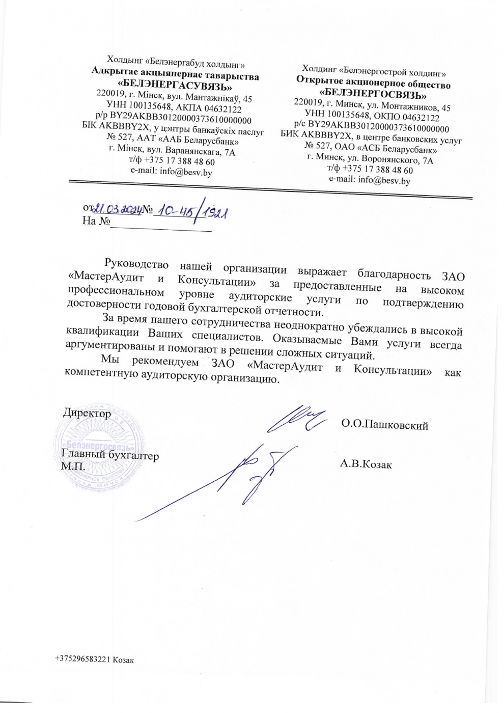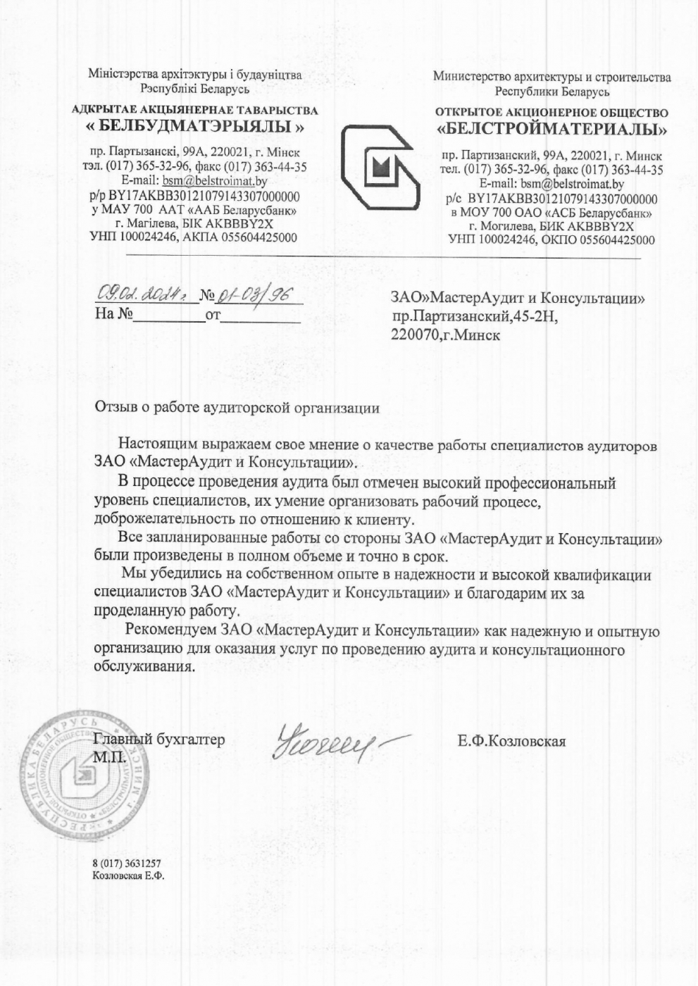 Длительность нашей работы на рынке аудиторских услуг, ежегодное присутствие в рейтинге ведущих аудиторских организаций Республики Беларусь, наличие постоянных клиентов свидетельствуют о нашей надежности, стабильности и высоком профессионализме.