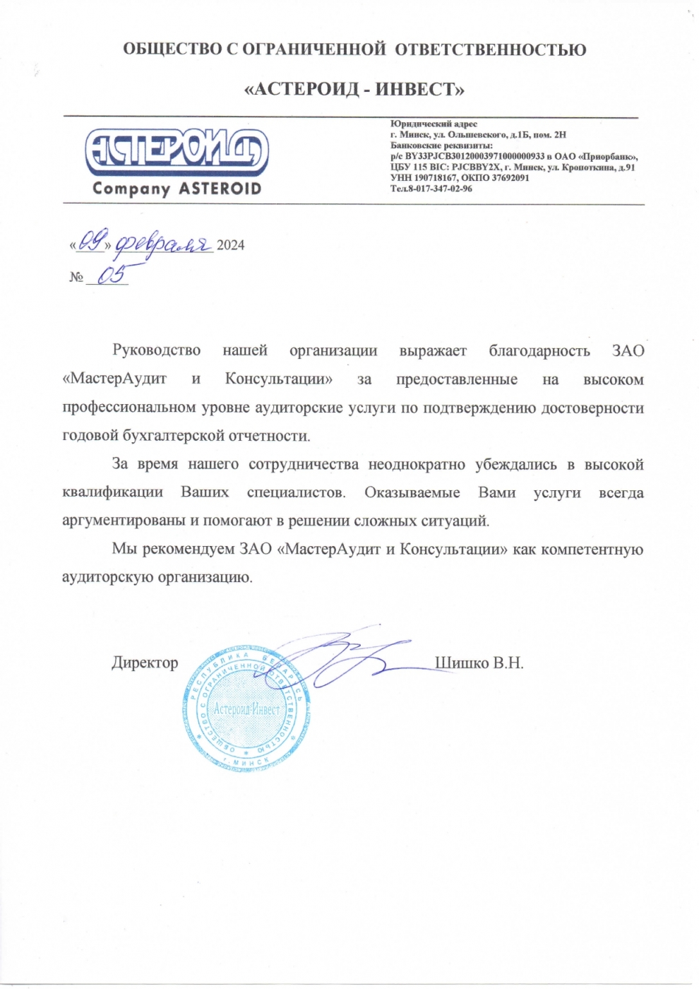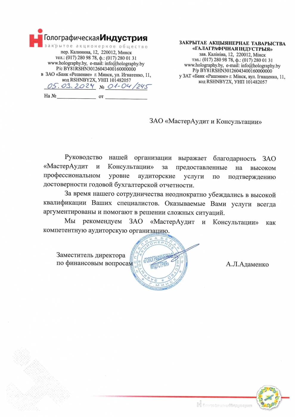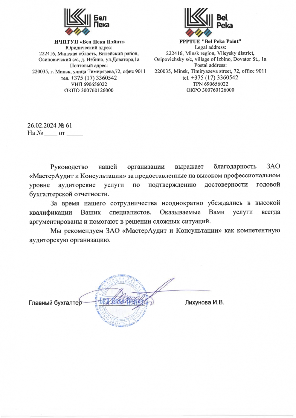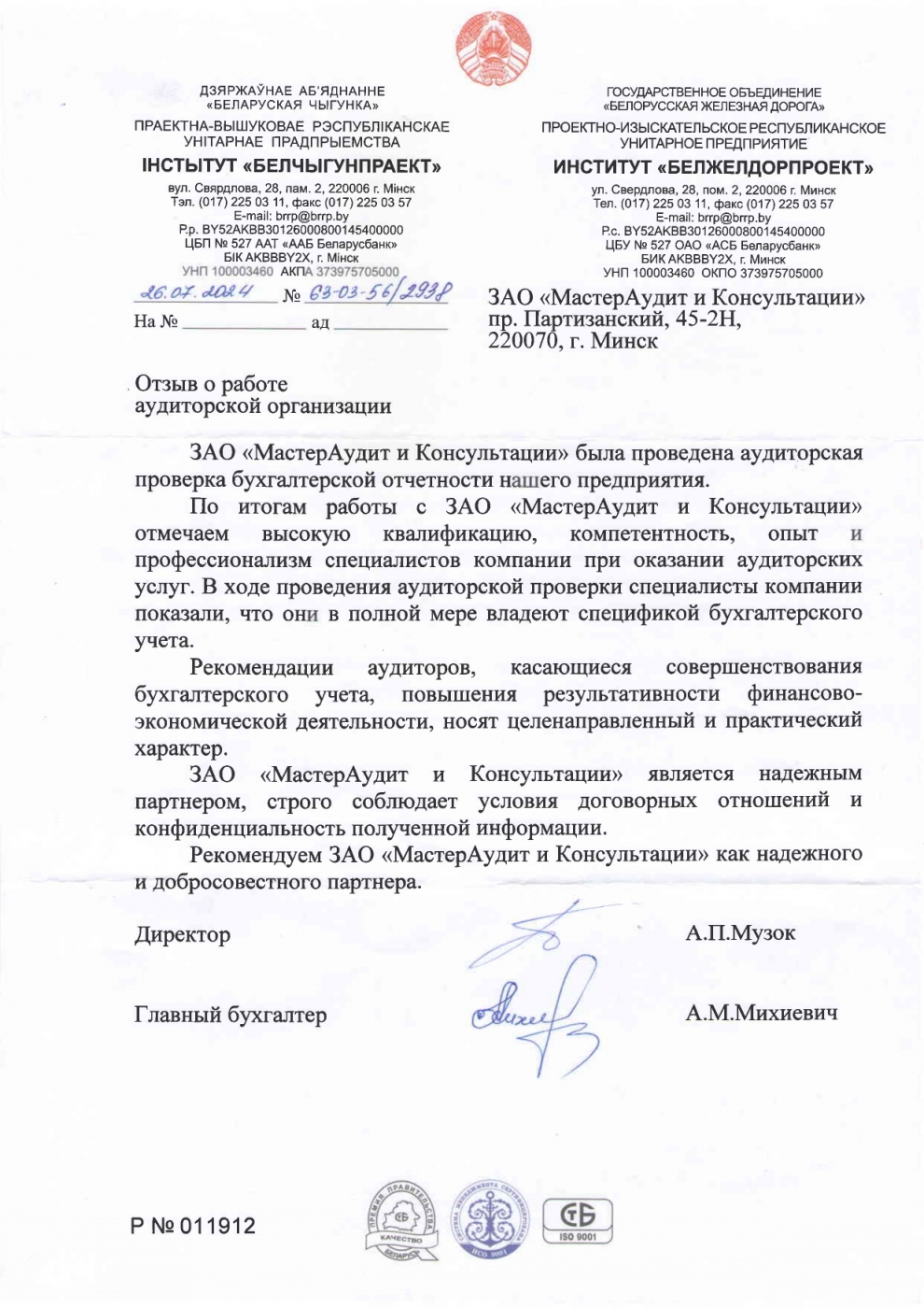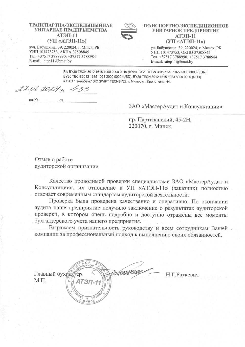 Длительность нашей работы на рынке аудиторских услуг, ежегодное присутствие в рейтинге ведущих аудиторских организаций Республики Беларусь, наличие постоянных клиентов свидетельствуют о нашей надежности, стабильности и высоком профессионализме.